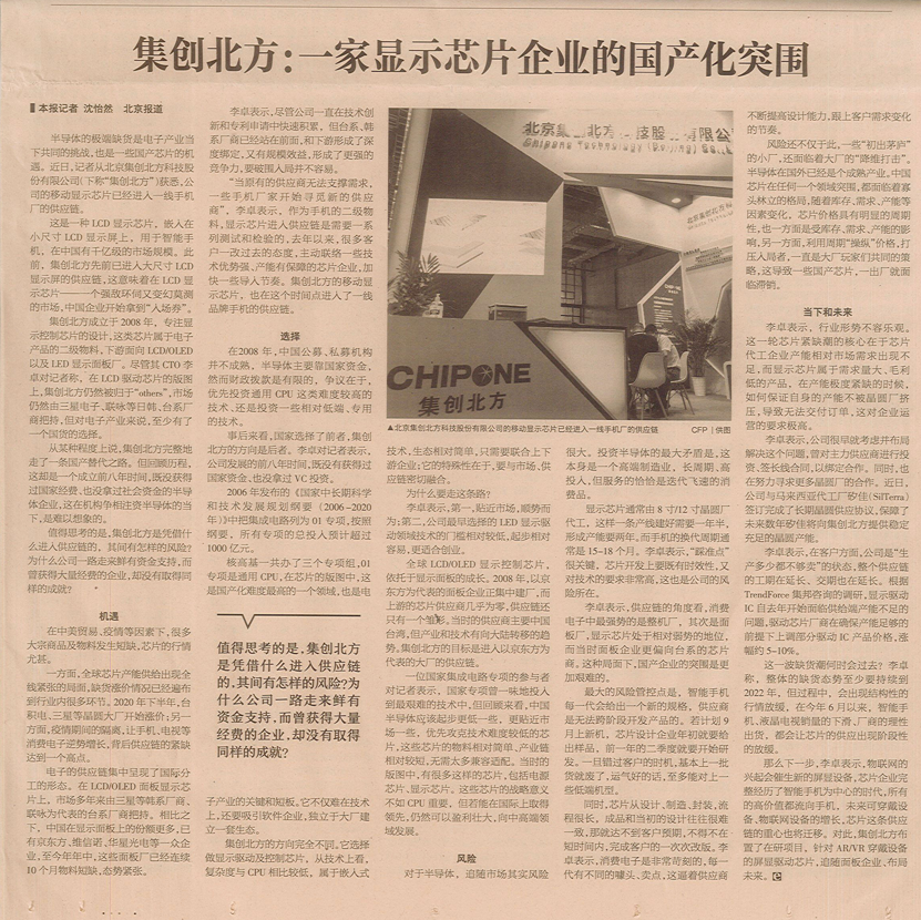《經(jīng)濟(jì)觀察報(bào)》集創(chuàng)北方:一家顯示芯片企業(yè)的國產(chǎn)化突圍