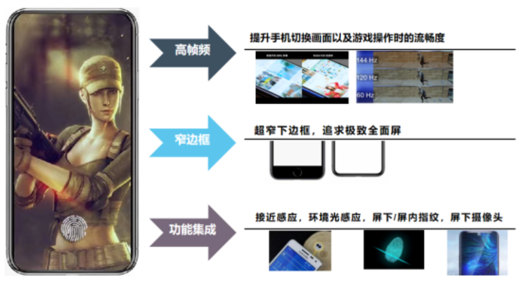 手機(jī)TDDI顯示屏技術(shù)發(fā)展趨勢(shì)高幀頻/窄邊框/功能集成度高。