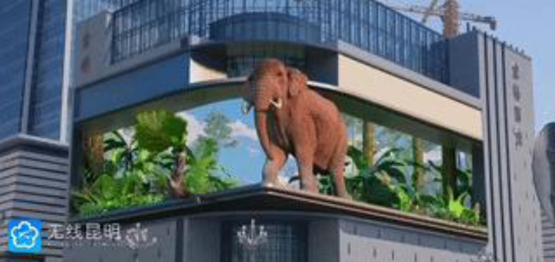 這塊位于金格中心外墻上的大屏是云南第一塊3D大屏,總面積2184平方米,在全國排行第三,大屏成弧形圓角,轉(zhuǎn)角處因采用曲面平滑技術(shù),其分辨率達(dá)到了8K,現(xiàn)場觀眾可以看到無縫銜接的逼真裸眼3D效果。在拍攝中無論遠(yuǎn)景近景還是背景,都清晰可見,讓“所見即所得”的全實(shí)時(shí)影視制作流程變得完整。此次大屏幕播放的COP15裸眼3D視頻宣傳片中,中國云南的很多特色動(dòng)植物如綠孔雀、亞洲象、金絲猴等都栩栩如生的立體畫面效果,造就震撼視覺沖擊力,帶給人們新穎的媒體視覺體驗(yàn)。此次,昆明如此逼真的裸眼3D立體效果除了給每個(gè)觀者帶來強(qiáng)烈的沉浸式體驗(yàn)外,也激發(fā)每個(gè)人讓從內(nèi)心深處升騰出保護(hù)大自然生物多樣性的責(zé)任感和使命感。