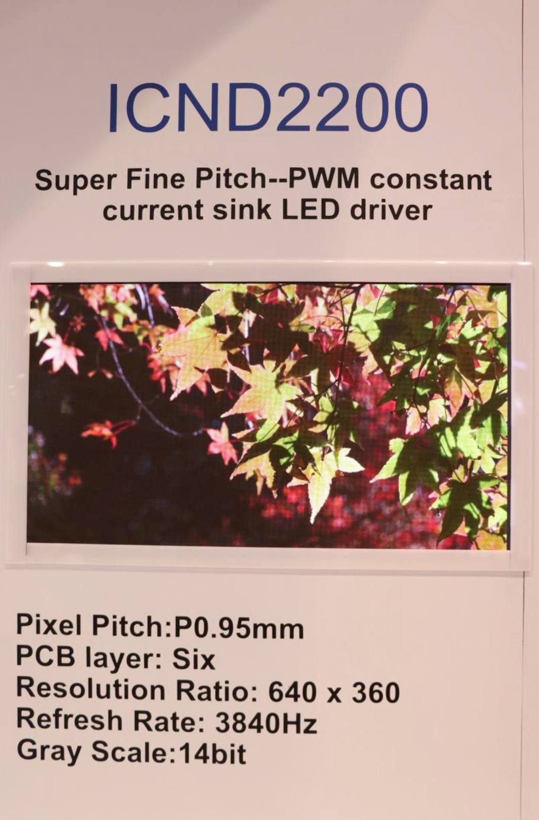 ICND2055和ICND2065這兩款代表了高性能小間距發(fā)展方向的PWM產(chǎn)品,體現(xiàn)了高度的智能化特性。ICND2055內(nèi)置智能gamma轉(zhuǎn)換,可調(diào)整gamma值,進(jìn)行智能動(dòng)態(tài)節(jié)能,并在降EMI方面表現(xiàn)優(yōu)異。ICND2065則在掃描數(shù)方面進(jìn)一步提高,優(yōu)于當(dāng)前市面上PWM IC在P2.5 32掃的效果。它可用于COB解決方案,支持64掃的驅(qū)動(dòng)IC能夠解決COB產(chǎn)品的PCB設(shè)計(jì)與成本問(wèn)題。目前,國(guó)內(nèi)外知名廠商都在陸續(xù)導(dǎo)入這兩款產(chǎn)品并進(jìn)行批量生產(chǎn),甚至有參展商伙伴已經(jīng)開始展示。在8寸晶圓非常緊缺的時(shí)期,終端屏廠對(duì)高階驅(qū)動(dòng)IC的需求尤為迫切,預(yù)計(jì)這兩款產(chǎn)品近期將迎來(lái)需求量高峰期。