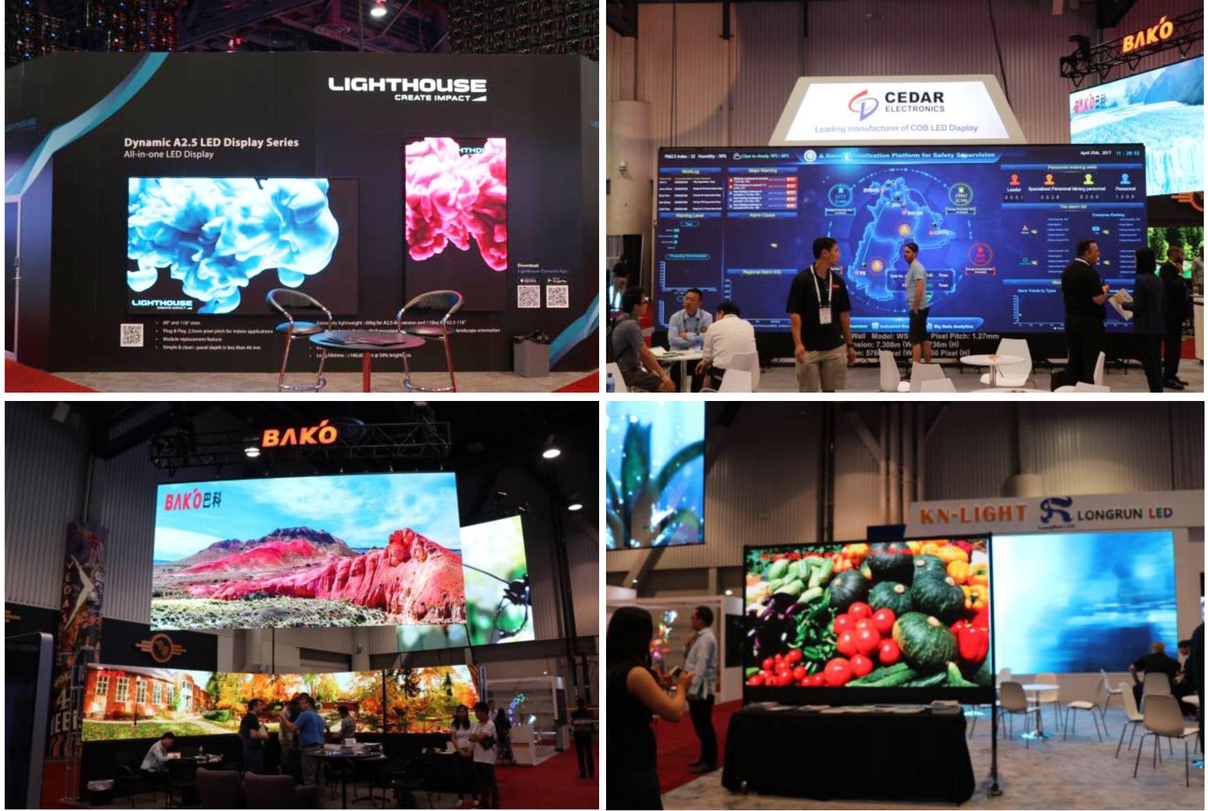 6月6日-8日,為期三天的視聽顯示技術(shù)與系統(tǒng)集成展會(huì)InfoComm在美國(guó)拉斯維加斯會(huì)展中心(LAS VEGAS CONVENTION CENTER)開幕。該展會(huì)由美國(guó)國(guó)際信息交流行業(yè)協(xié)會(huì)舉辦,在專業(yè)視聽、電子系統(tǒng)集成、燈光音響、智能建筑領(lǐng)域享譽(yù)全球,聚集了全球頂級(jí)的視聽技術(shù)、解決方案,為視聽廠商和專業(yè)用戶提供了寶貴的交流平臺(tái)。 集創(chuàng)北方攜多款行業(yè)領(lǐng)先產(chǎn)品首次亮相InfoComm USA展,展示了在LED顯示領(lǐng)域高智能、高集成、高品質(zhì)的創(chuàng)新成果。此次展會(huì)上受到極大關(guān)注的L+產(chǎn)品系列,通過(guò)采用新協(xié)議、新架構(gòu)以及更高的集成度,實(shí)現(xiàn)了雙線串行+行列合一+小封裝體的形式,能夠降低客戶端的綜合成本,通過(guò)智能化的控制以及統(tǒng)一的信號(hào)協(xié)議,進(jìn)一步帶來(lái)設(shè)計(jì)流程上的簡(jiǎn)化。其產(chǎn)品特征主要包括:簡(jiǎn)化電路結(jié)構(gòu)、降低PCB成本;統(tǒng)一信號(hào)協(xié)議,控制簡(jiǎn)便;高集成架構(gòu),更好顯示效果;智能化控制,減少調(diào)試等等。 其中,ICND2200驅(qū)動(dòng)IC是第一次點(diǎn)亮展出,專為超小間距LED顯示屏設(shè)計(jì),具有創(chuàng)新的行列合一整合架構(gòu),雙線串行數(shù)據(jù)傳輸方式,單顆IC控制16x8像素,兩顆級(jí)聯(lián)控制32x16像素。ICND2200以0.95間距及PCB 僅6層的特點(diǎn)吸引了很多客戶駐足拍照,顯示效果較為突出。