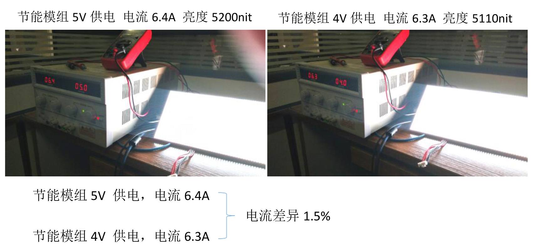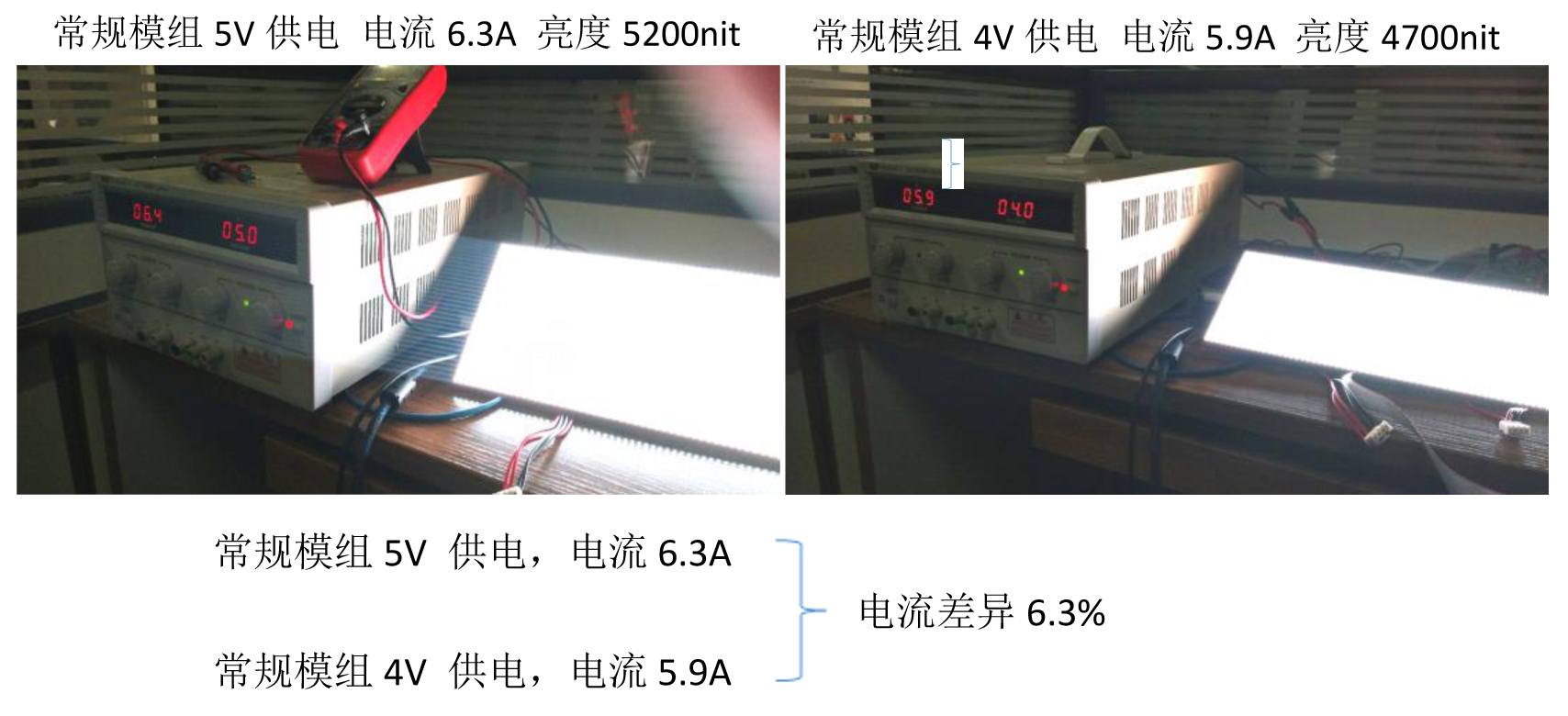 經(jīng)測(cè)試P5和P8的模組均可使用4V電壓供電保證模組電流、亮度、顏色無變化,實(shí)測(cè)節(jié)能比例可達(dá)21%。