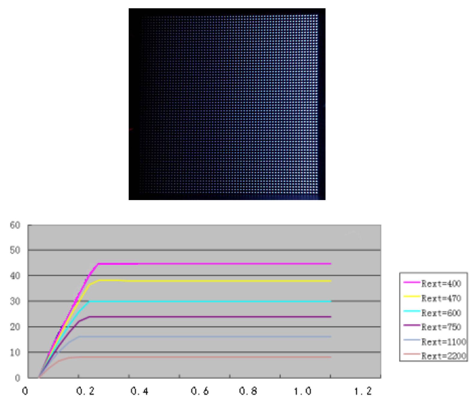 小結(jié):節(jié)能模組在電壓降低的同時(shí),模組電流基本無變化,顏色無變化,亮度基本無變化,說明ICND2045 在4V供電時(shí)仍然可以保持恒流輸出。