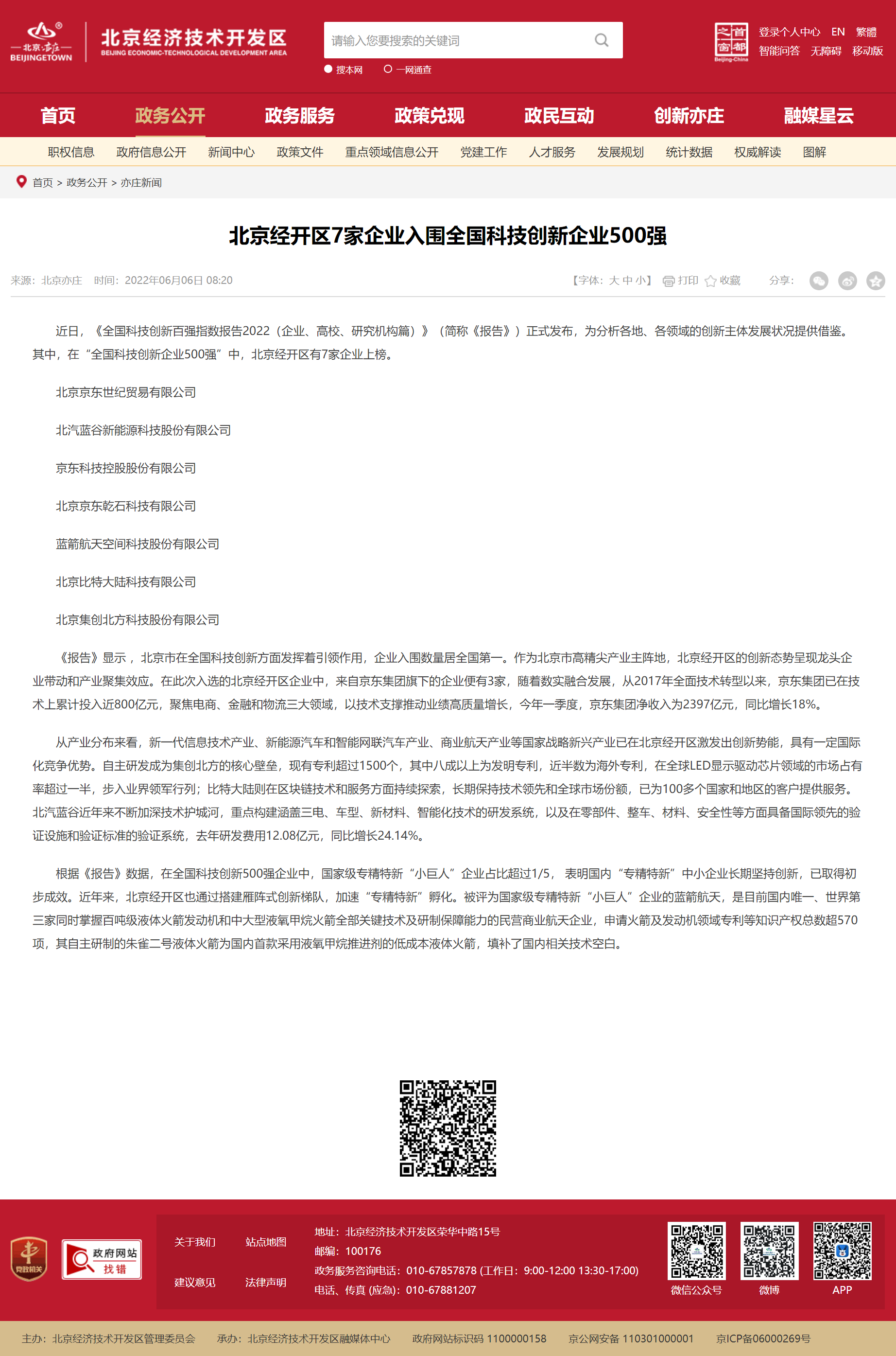 《北京經(jīng)濟(jì)技術(shù)開發(fā)區(qū)》:北京經(jīng)開區(qū)7家企業(yè)入圍全國(guó)科技創(chuàng)新企業(yè)500強(qiáng)